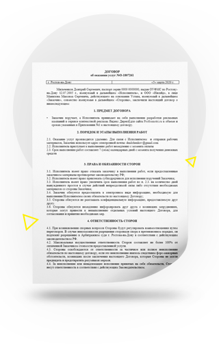 Я заинтересован в качественном выполнении своей работы. Чтобы и Вы были уверены в партнере, мы работаем по договору