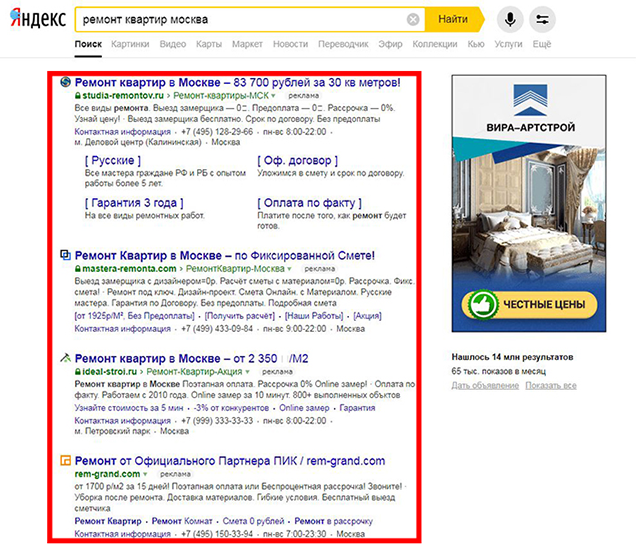 Мы определяем бюджет на рекламу, просчитываем оптимальную стоимость заявки, снижаем стоимость заявки в процессе ведения и увеличиваем количество заявок при том же бюджете. Добиваемся отдачи от каждого вложенного рубля и не тратим деньги на "мусор".