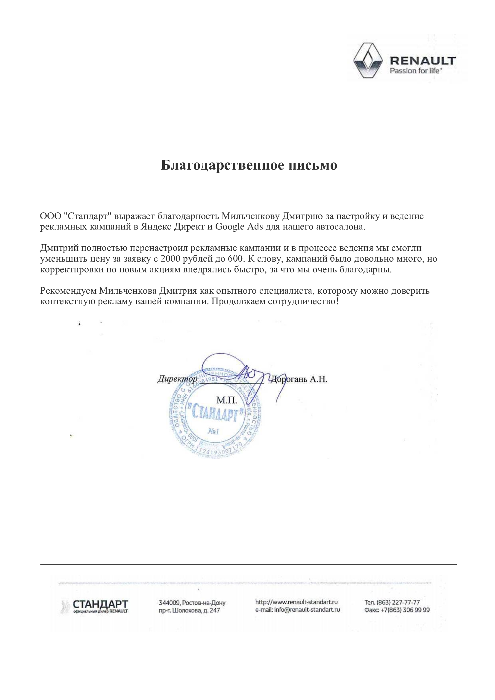 Перенастроил Яндекс.Директ для автосалона Renailt. Стоимость заявки в кампаниях клиента была 7 000 рублей. Я настроил отдельные кампании под каждую модель авто, проработал сегменты аудитории и сократил стоимость заявки при ведении до 1 957 рублей и увеличил их количество в 1,5 раза при том же бюджете.