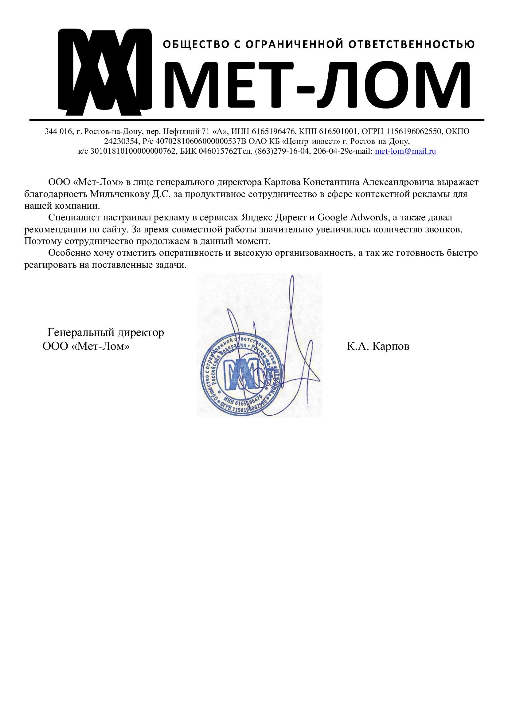Клиент: Прием металлолома ООО «Мет-Лом»