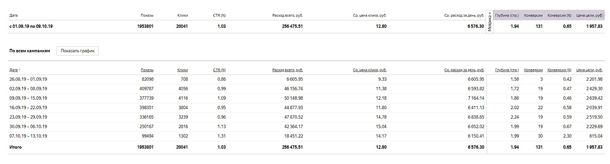 Анализ имеющейся статистики и аудит рекламных кампаний